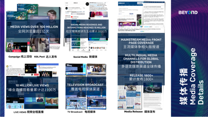 BEYOND Expo 2023将约请超300家干流媒体全程参与报导大会盛况,为新品添加曝光量及传达声量,取得全球高度重视,产品能够在很多同品类产品中锋芒毕露,快速招引更多顾客眼球。BEYOND组委会还将供给媒体和展商对接和沟通的时机,特别安排媒体巡展、媒体对接会等活动,经过向各个专业范畴媒体同伴展现企业前沿科技立异产品,让媒体同伴全方位了解不同范畴最前沿的科技理念与品牌文明,添加企业取得曝光的时机!值得一提的是,BEYOND组委会还将约请科技立异范畴KOL露脸展区,与参与参会者一同参与新品体会、沟通互动。