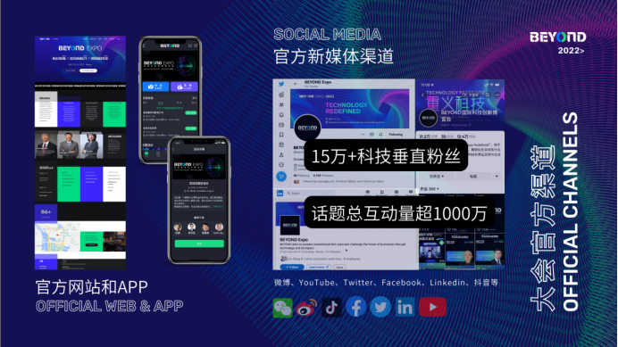 BEYOND组委会将在线上线下全方位鼎力相助,会前活动预热,BEYOND官方网站、APP、海内外新媒体途径全途径对新品发布进行活动公告及产品显露,现在BEYOND官方新媒体途径科技笔直粉丝量15w+,大会期间发布论题总互动量超1000万。会中供给线上线下官方互动活动策划及会后活动继续曝光等解决方案,招引线下参会者观展体会,线上用户充沛了解产品优势,提高新品认知度,打造用户购买心智。